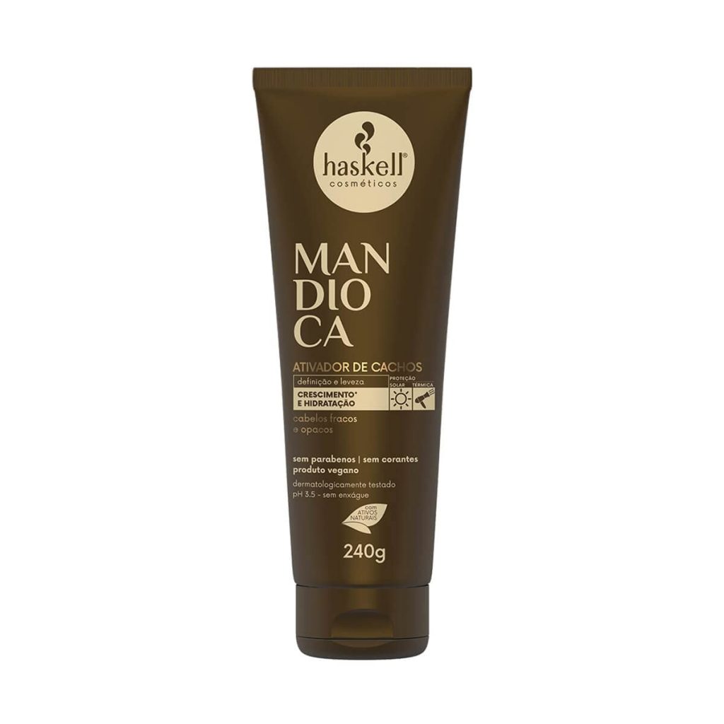 Activador De Rizos Mandioca en crema está diseñado para cabellos débiles y sin brillo. Ideal para modelar y definir rizos, retiene la humedad y previene la sequedad, manteniendo la hidratación del cabello. Ofrece protección térmica y solar, y no requiere enjuague. Modo de Uso: Con el cabello húmedo, aplica una cantidad suficiente de Activador de Rizos en la palma de las manos y extiende sobre el cabello mechón a mechón. Úsalo como crema de peinado antes de secar con difusor o para definir rizos. No necesita enjuague.